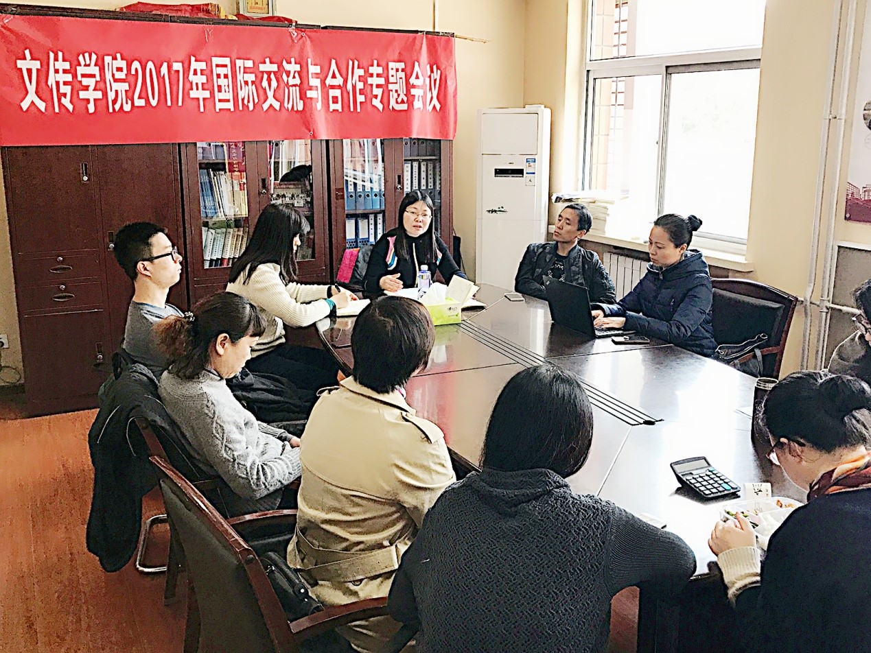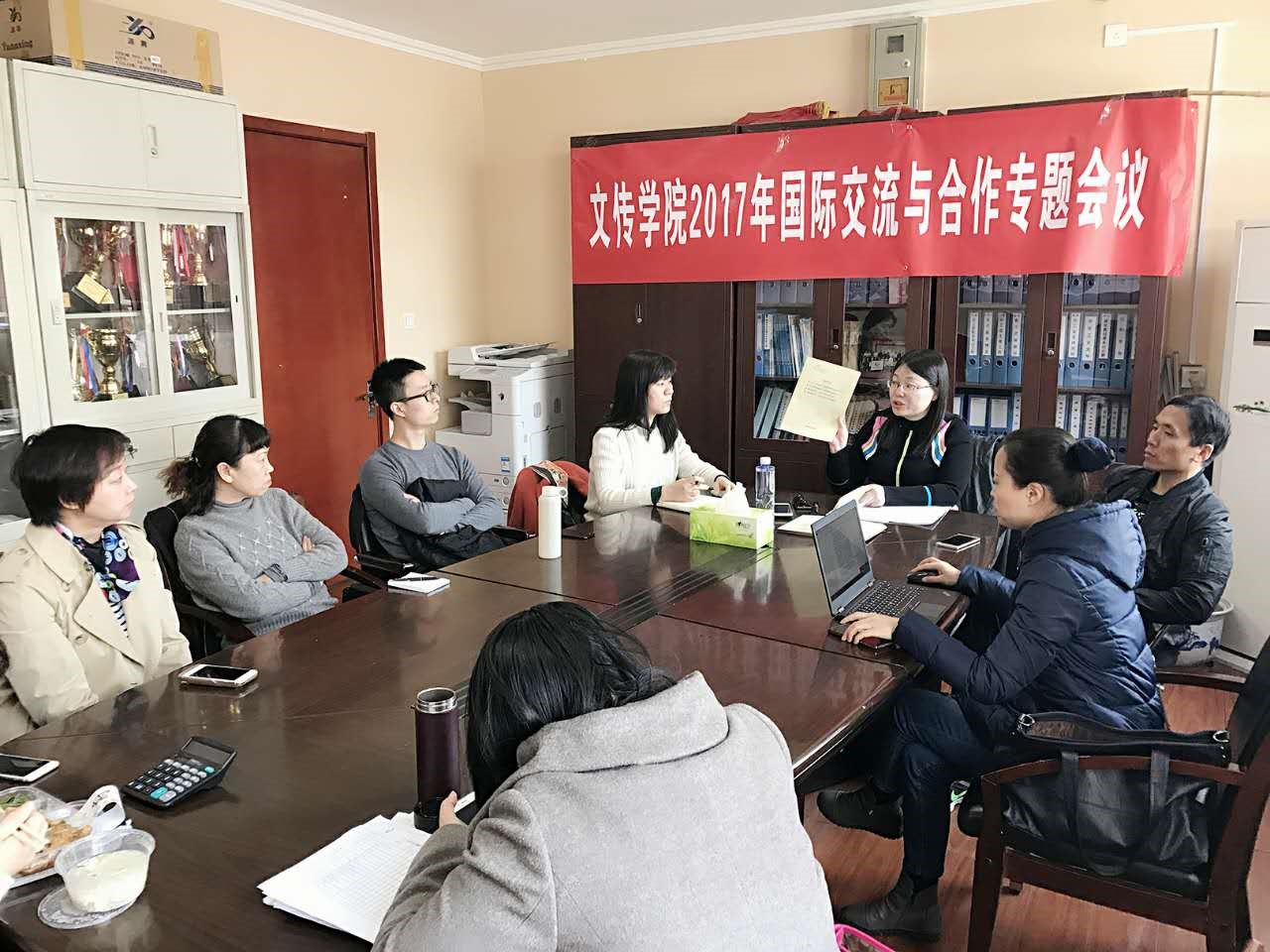 2017年3月29日,文传学院召开2017年国际交流与合作专题会议,学习北京市教委及老王磁力 相关文件,分析学院在国际交流与合作工作中的存在的问题,了解学院现有资源条件,探讨、布置本年度学院国际交流与合作计划与重点。