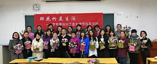 年年月月花相似,似曾相识“节”又来。目前,在文传学院53人的队伍中,女教工29人。怎样以别开生面的形式纪念妇女节,是文传党政领导班子和分工会特别关注的问题。去年的文传“春之声”音乐欣赏会和今年的插花活动,契合了女教师对美好生活的追求,得到了大家的高度认可和赞赏,为温馨小家的建设发挥了重要作用。