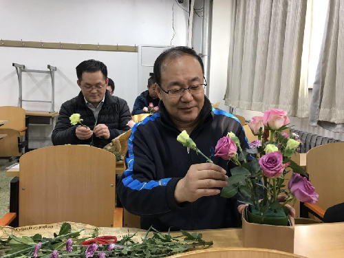 插花活动在“院长有话说”中开始。石刚院长代表学院感谢全体女教工的辛勤付出,并致以节日的祝福,他还以直率、朴实的话语对处于未婚、已婚等不同状态的女教师提出希望,引得满堂喝彩,掌声不断。