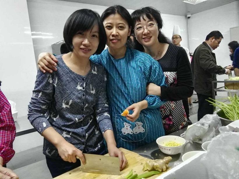 厨艺展示一开始,各系部选派的教工代表在后厨大展身手。传播学系郑文明老师一人做出了两道大菜——“酸菜鱼”和“回锅肉”;汉语言文学系朱琳老师的“黄豆炖猪蹄”获得一致称赞;艺术教研部杨伶老师端出了家乡菜“麻婆豆腐”;广告学系夏凡老师在陪母亲看完病后赶到现场,带来了自制的山东面食“杠子头”;广告学系许敏玉老师、实验中心的王端老师、教务秘书张怡岚老师都亮出了精心准备的绝活;兼职辅导员陈子轩主动请缨,制作了中西合璧的鸡蛋饼。与此同时,全院教师、研究生以及本科生代表一起动手,拌饺子馅、擀皮、包饺子、煮饺子,香气扑鼻,惹人垂涎。