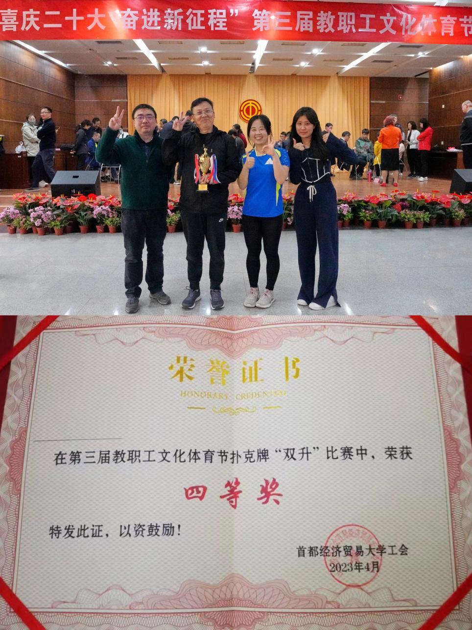 最终,经过各项激烈的角逐,旱地冰壶项目、扑克牌“双升”项目的选手们分别斩获了第三名、四等奖的好成绩!好成绩的取得既是选手们共同努力的结果,也是全院教职工团结一心、奋力拼搏的生动写照!