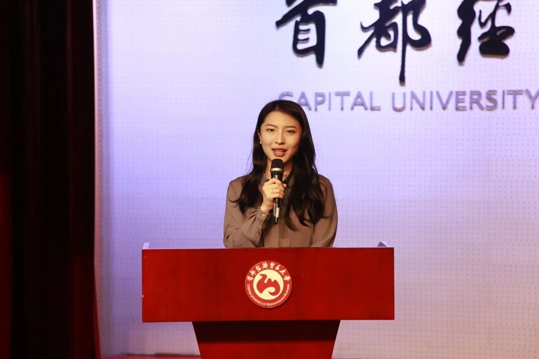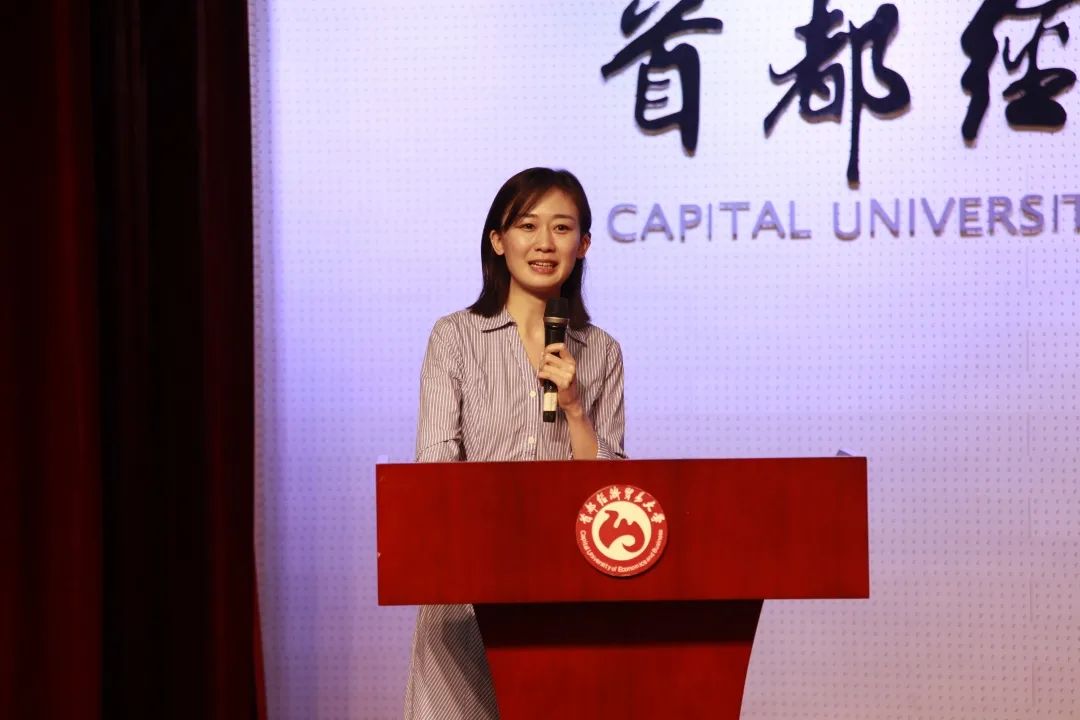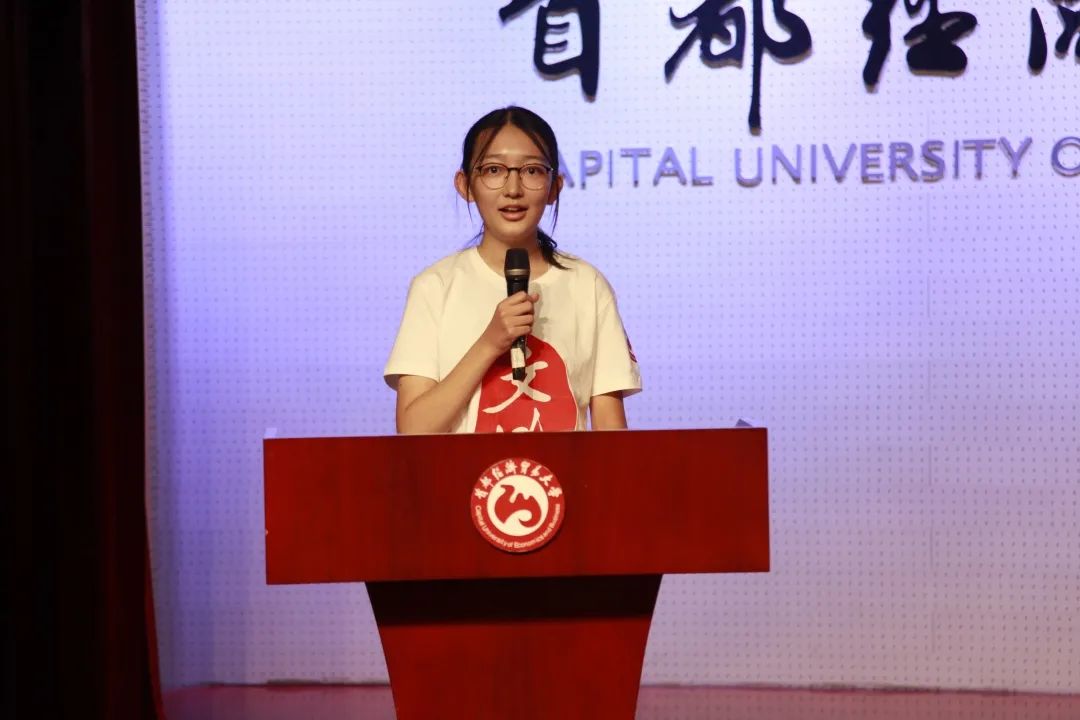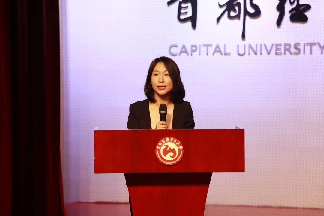 随后,广告学系教师王子琪作为教师代表进行发言。她在发言中表示,期待新生们以一种专业的态度扮演好每一个阶段社会赋予的角色,也祝愿同学们能在大学生活里交到知心的朋友,心怀感激、奉献关怀。