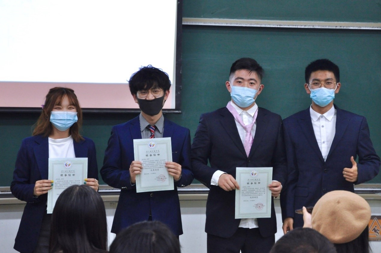 大会第二项,由党总支副书记高琼、分团委书记郭奕彤和兼职辅导员贺琦颁发本学期优秀部长证书。本学期各部门工作进展顺利,完成度高,这与各位部长的辛勤付出是分不开的,在此对优秀部长进行表彰。