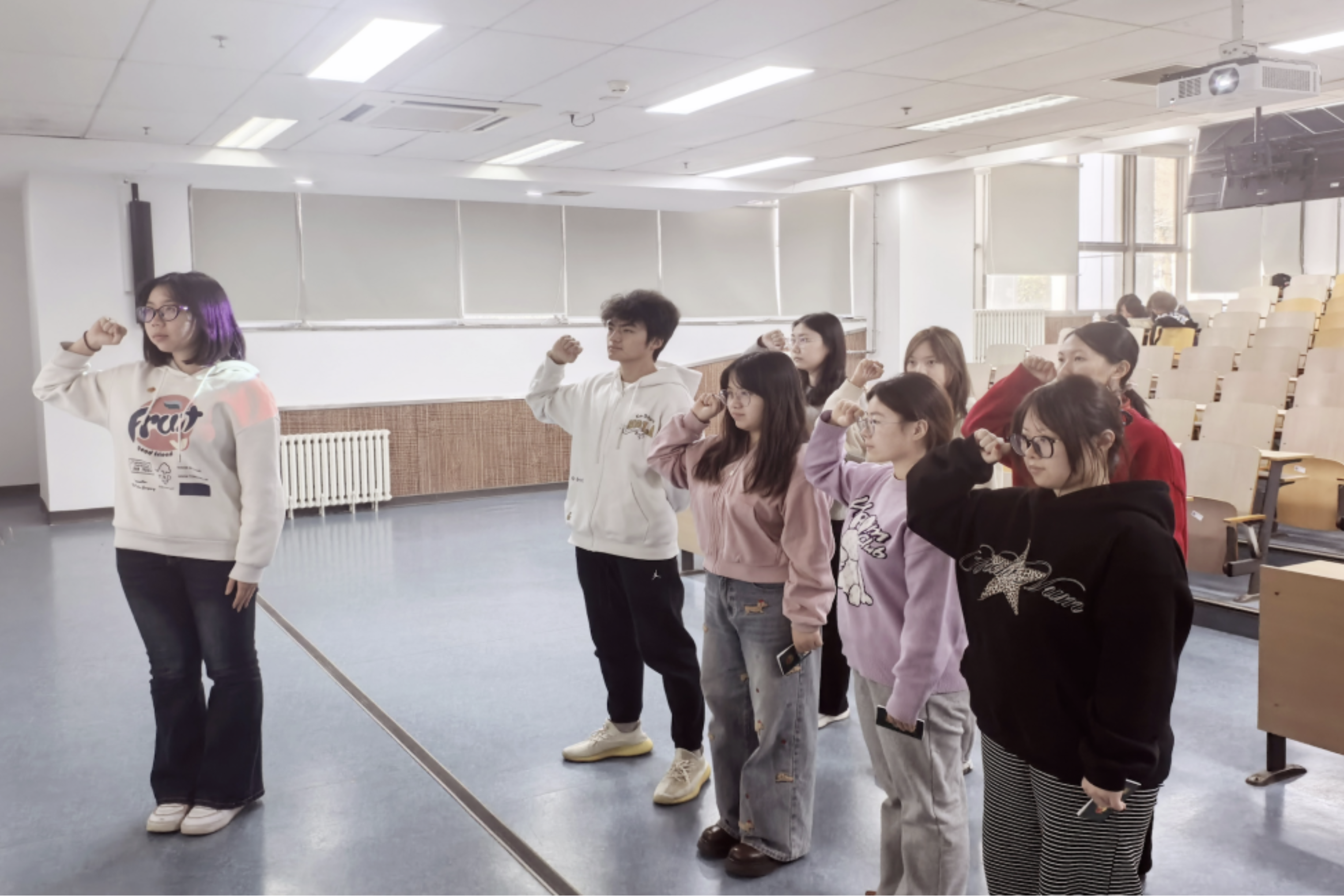 接着,宣誓环节正式开启。新团员们面向鲜艳的团旗,抬起右手,紧握成拳,以坚定的姿态,庄严宣誓。每一句誓言都铿锵有力、掷地有声,充分展现出新团员们不懈奋斗、勇往直前的决心和信心。