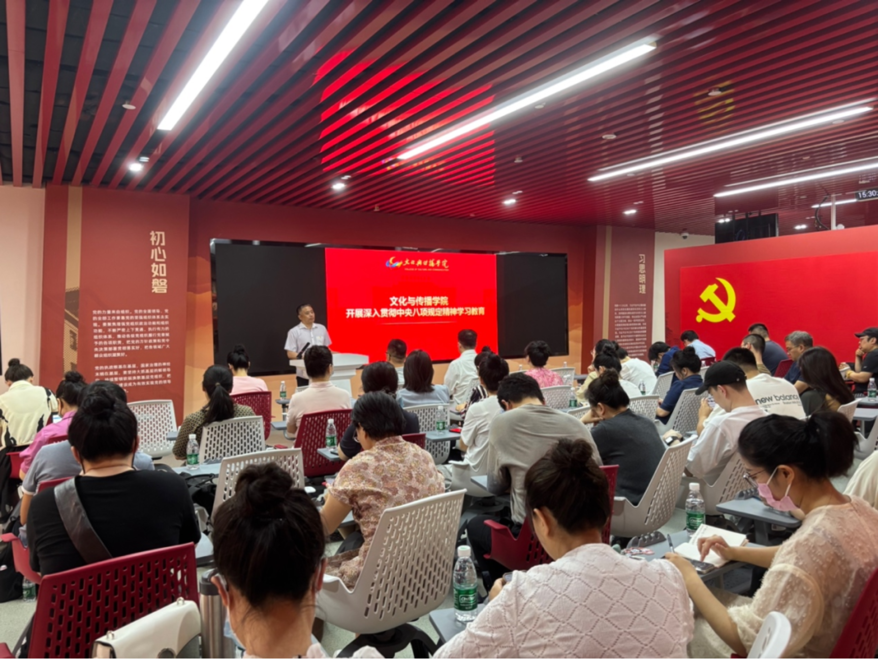 专题党课前,全体党员干部通过自学和集体学习等方式深入交流研讨。大家认为,高校落实中央八项规定精神,需在意识形态领域强化教职工思想引领,筑牢校园思想阵地;在服务师生层面,将作风建设成效转化为服务学生成长成才的实际行动。