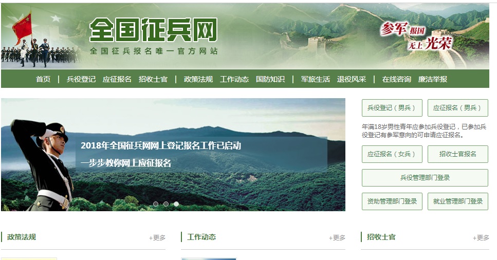 1.进入全国征兵网://www.gfbzb.gov.cn/。点击右上方“兵役登记”