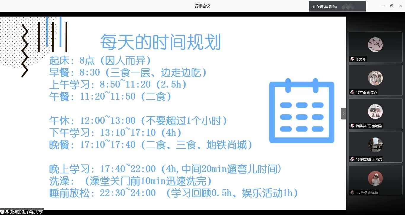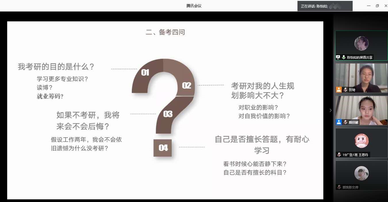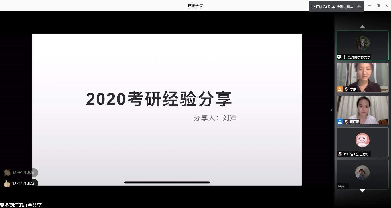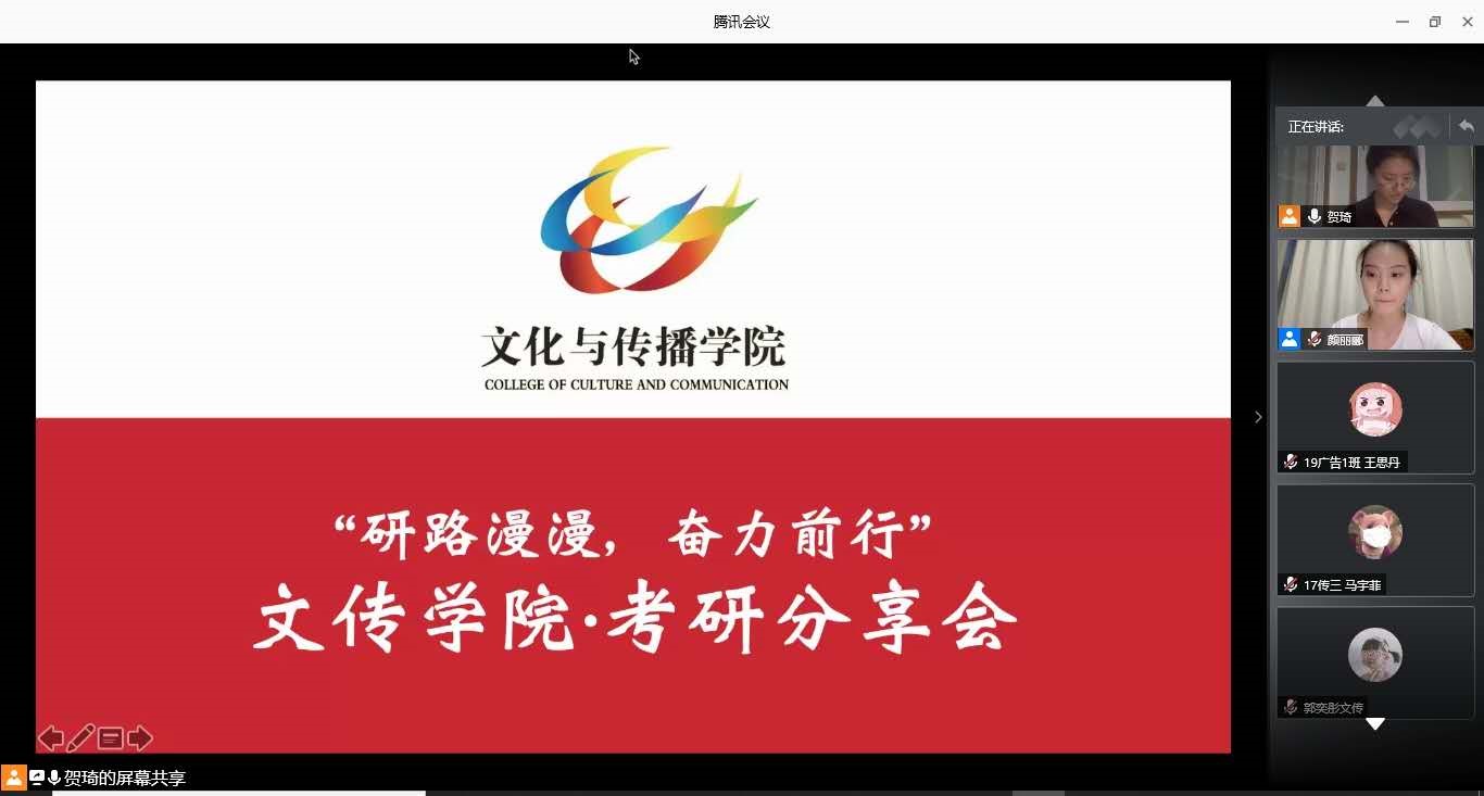 以梦为马,不负韶华,伴随着2020考研结果尘埃落定,2021考研大军已踏上了追逐梦想的征程。为了帮助同学们更好地备战2021考研,文传学院分团委社会实践部于2020年7月9日举办了一场线上“研路漫漫,奋力前行——考研分享会”。该分享会是老王磁力 “扬帆未来,筑梦远航”生涯规划系列活动之一。