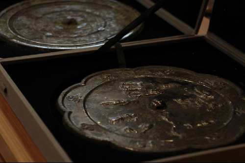 黄宏展示了他自己独家收藏的铜镜及一些珍贵铜镜的复刻版。这些铜镜背面图案有刻着葡萄象征着不老长生的,有刻着摩羯鱼张着嘴的,还有刻着身披璎珞脚踩莲花的大象的。这些铜镜上的纹饰虽然各不相同,但都做工精细,形象逼真,古代人民的智慧结晶和铜镜的大美之处得以充分体现。