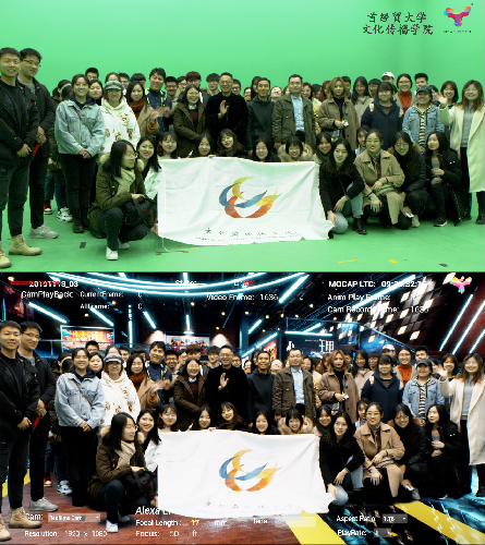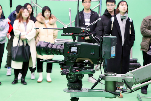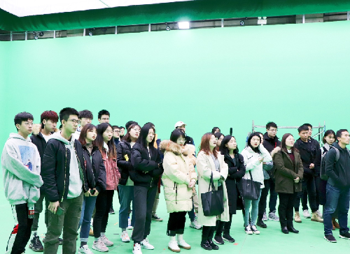 随后,同学们进入艾沃次世代数字片场。在国福亲自带领、讲解下,师生们看到了最新的数字影视制作设备,置身在不同于传统摄影棚的数字影视创作、制作环境,趣味盎然、兴致勃勃参观、体验了《疯狂的外星人》《刺杀小说家》和《熊出没》等影片虚拟拍摄环节和数字制作过程。看绿幕前身穿感应设备的演员,如何就成为了视频中同步运动的动画人物;看站在现场的老师、同学,如何出现在虚拟影片场景里;看同学如何在视频中与大黄蜂动画人物面对面拳击……混合现实技术能大幅度减少影视制作周期、人力与成本,颠覆性改变影视产品样态与形式、制作内容与环节、产业面貌与格局,这让师生们在感受技术最新发展和有待焕发的巨大能量之余,也引发了对传播行业未来、社会文化变迁的更多思考。