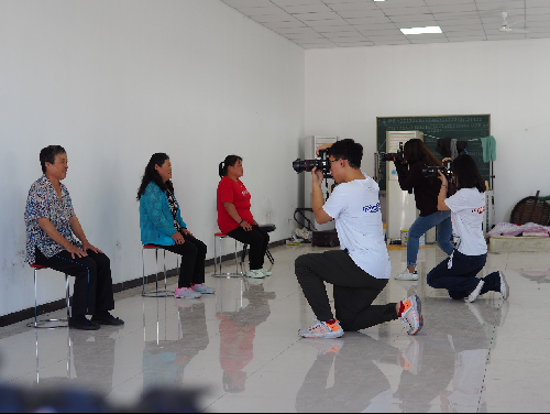 九点五十左右,在文传学院学生们对照相机、摄像机等设备进行了调试以后,村民们纷纷来到了委员会,学生们为村民进行了证件照拍摄。与此同时,学生分组专访也在紧锣密鼓地进行着,专访分别采访到了太子墓村党支部书记彭德印和太子墓村第一书记欧锦林。
