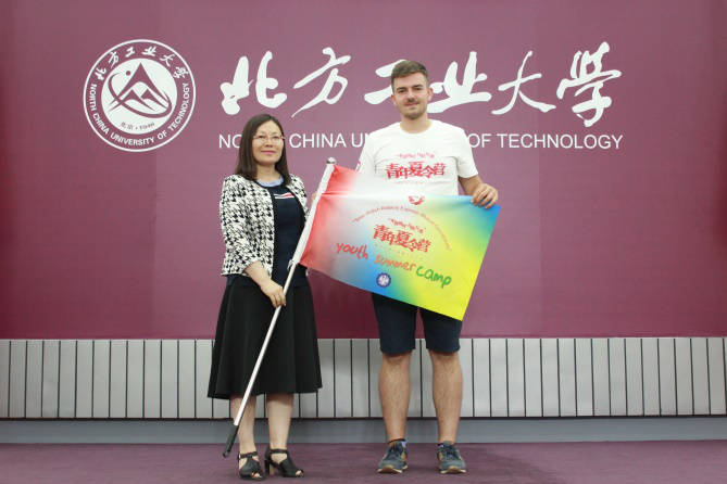 开营仪式在上午十点正式开始。首先是北方工业大学的校领导致辞,对波兰同学的到来表示热烈的欢迎。一带一路是国际合作的新平台,是国家的战略性决策。体现了和平、交流、合作、共赢的精神。波兰是一带一路沿线的重要国家,也是最早与新中国建交的国家之一。两国传统友好,双边关系发展平稳。一带一路是中波关系发展的加速器。作为高校学生,也应该学习一带一路开放包容、互学互鉴的丝路精神,拓展视野,加强交流合作。接着波兰学生代表发言,对中方的热情招待表示了感谢,最后,各领导将象征友谊的旗帜交到波兰各高校学生代表手中,我校文传学院郭媛媛副院长代表老王磁力 为波兰营员代表授旗。全体师生在国际学院门口合影留念,开营仪式圆满结束。