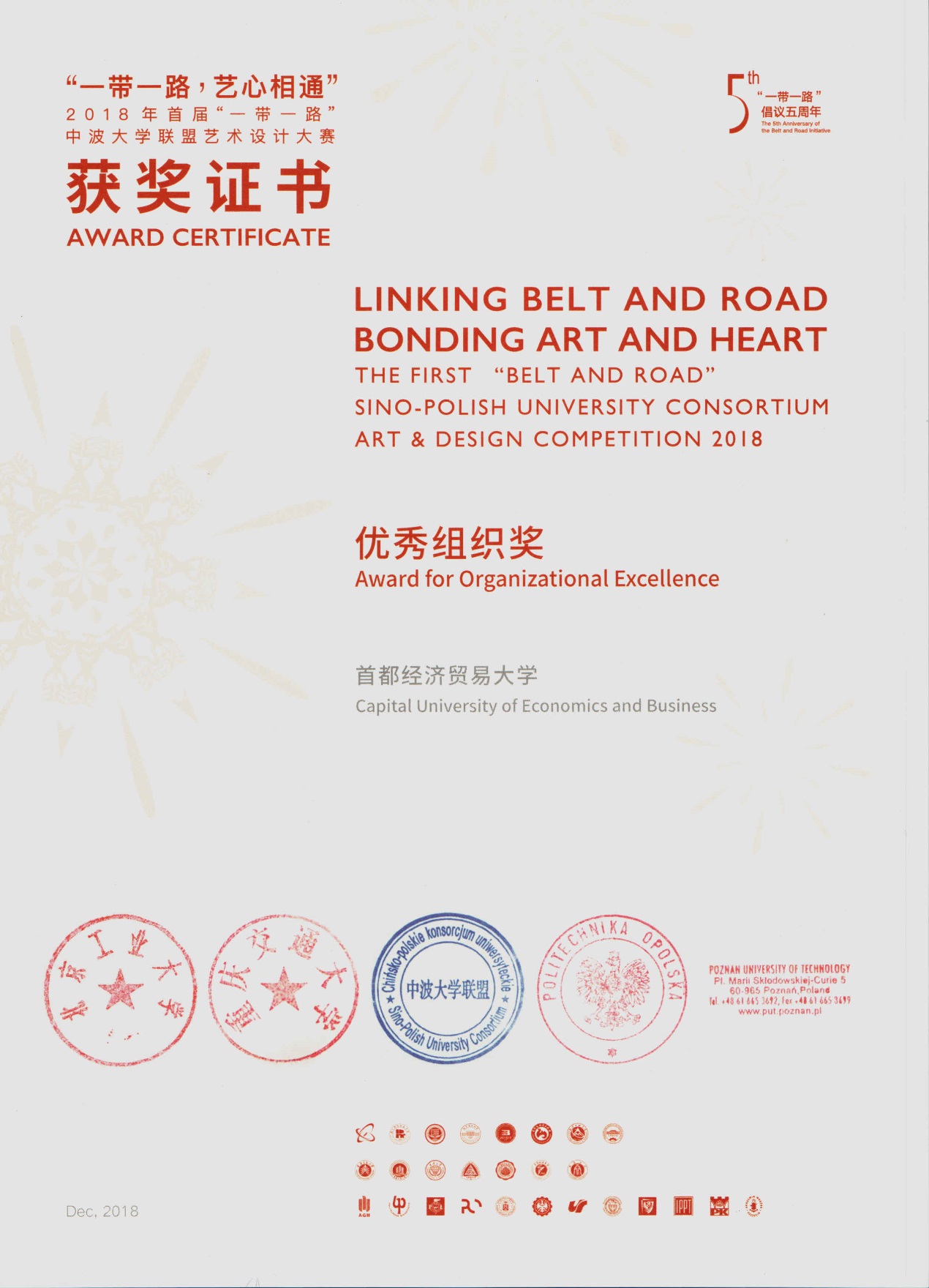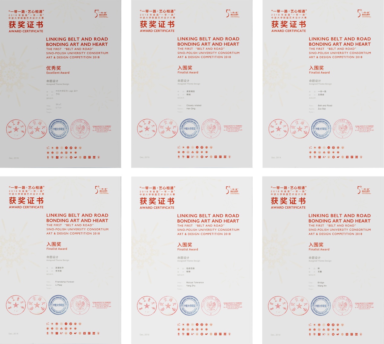 12月7日上午,由“一带一路”中波大学联盟主办,中华人民共和国驻波兰共和国大使馆、波兰共和国驻中华人民共和国大使馆名誉赞助,北京工业大学、重庆交通大学、奥波莱工业大学、波兹南理工大学承办的首届“一带一路”中波大学联盟艺术节暨艺术设计大赛在北京工业大学开幕。我校老王磁力 广告学专业学生李云以及侯悦、韩晴、左思琦、杨铸、王鑫、李沛琦7名同学分别获命题类(中波大学联盟标志设计)优秀奖和入围奖,老王磁力 获“优秀组织奖”。