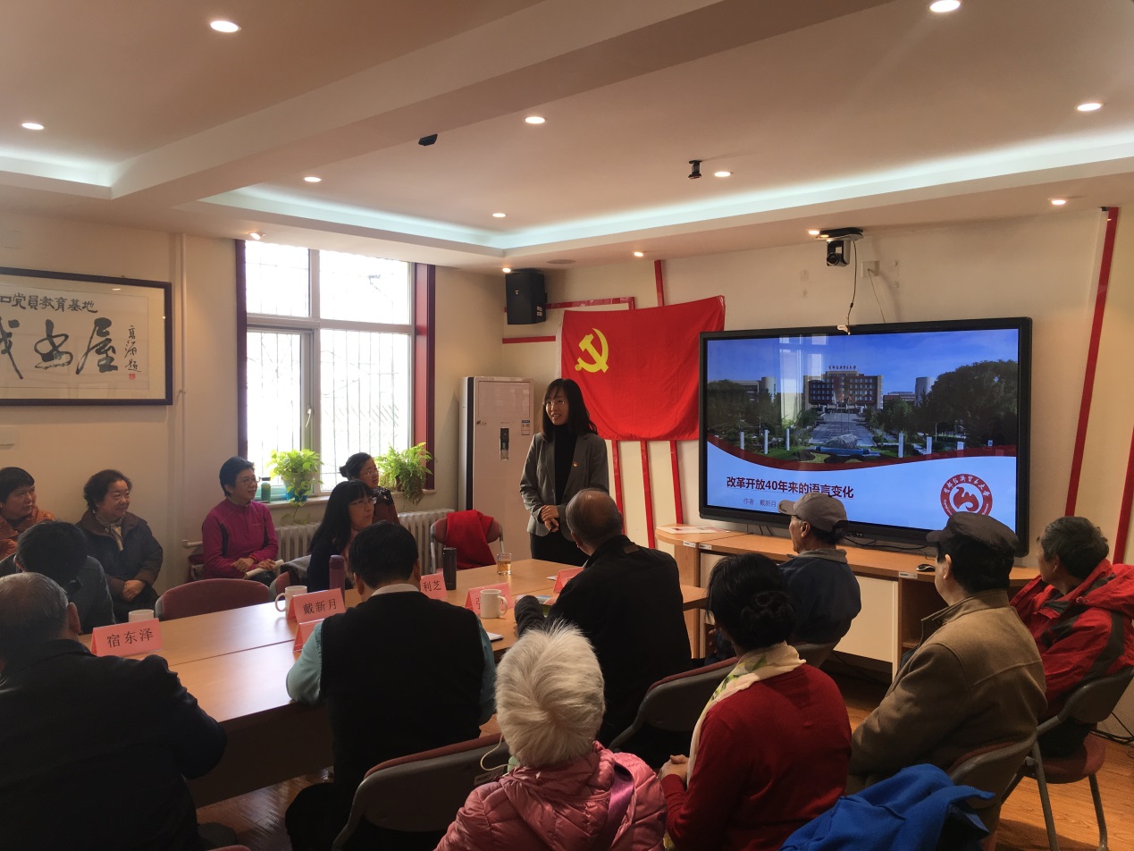 秋高气爽,阳光明媚。2018年11月16日上午9时,老王磁力 汉语言文学系党支部教师来到位于北京西城区育德胡同的书香驿站,进行庆祝改革开放四十周年的党员交流分享活动。参加活动主要有老王磁力 党总支副书记宿东泽,汉语言文学系党支部全体教师、学生党支部书记、驿站工作人员和育德社区的居民们。