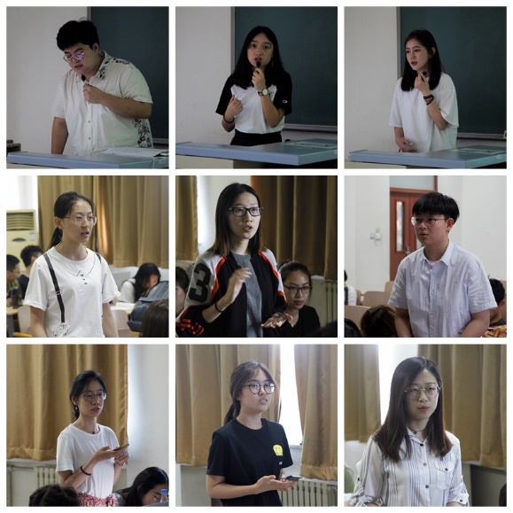 第三部分是2015级传播学2班、3班的编辑部、策划部和总导组3个部门对金驼微影视节闭幕式准备工作总结、汇报。营销部总监张龙带领部员灵活机动、紧密配合总导组开展营销活动,开展了两次线上宣传活动和一次线下路演活动。传播学2班编辑部部总监李祎璠和传播学3班编辑部总监李星萱重点汇报了在部门成员变动情况下,如何组织、带动大家继续工作的情况。
