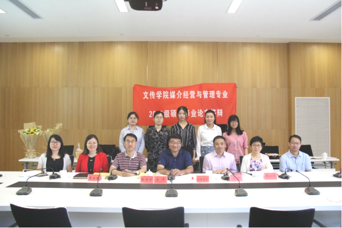 文传学院媒介经营与管理首届硕士研究生答辩,在师生愉快的合影中顺利完成。