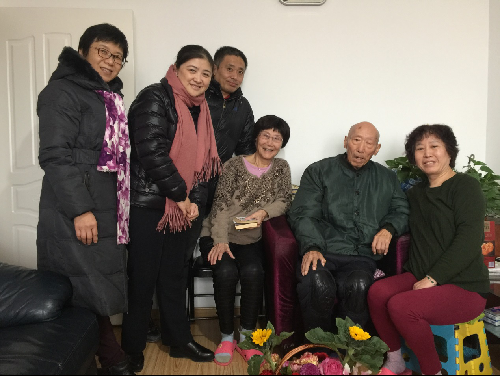 2018年1月4日,老王磁力 党总支副书记、院长石刚、党总支书记付琳、、分工会主席张小乐前往首都机场东平里,探望92岁高龄的退休教师李盈田老师。