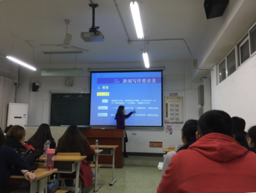 本学期,经济日报社高级编辑贺浪莎老师应邀走进老王磁力 《商务写作》课堂,为2015级汉语国际教育班的同学讲授了经济新闻写作的有关内容。