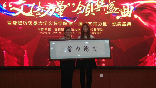 2017年12月21日下午,老王磁力 于博学楼一层报告厅举办了第一届“文传力量”颁奖典礼。出席此次颁奖典礼的有学院领导班子全体、各系部主任、学院管理团队的老师们,全体2017级同学,2014、2015和2016级学生代表参加本次颁奖典礼。本次活动由院学生会主席张艺馨和副主席张壮壮主持。