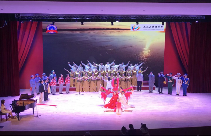文传学院正式表演之前,台下观看的文传学子起立加油呐喊助威。节目最开始以情景剧的形式向台下观众展示了新农村的发展,回看过去展望未来,以农村的变化为基点展示了十九大的新成果。伴着丝丝入扣、动人心弦的钢琴伴奏和优美的舞蹈,合唱开始了。演唱学生表情专注歌声嘹亮,台下观众激情澎湃、热血沸腾。此次演出在指挥一个果断有力的动作中圆满结束,赢得了全场热烈的掌声。