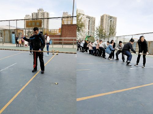 老王磁力 拔河总决赛于23日12点20分在学校轮滑场进行。参赛双方分别是老王磁力 与工商管理学院,两方代表队都派出最强比赛阵容。比赛正式开始前观众已陆续到场做好为各自学院加油的准备。随着裁判一声哨响,参赛队员们握紧长绳卯足了劲往后拉。文传参赛队员双脚站开,尽量压低重心,使出最大力气将绳子往后拉。一旁观战的学生会部长和学生们大声呐喊着“一二三”为参赛队员们喊节奏。哨子声,呐喊声此起彼伏。第一局比赛在激烈的气氛中结束。由于工管学院势头强劲赢得第一场的胜利。双方交换位置,开始进行第二局比赛。