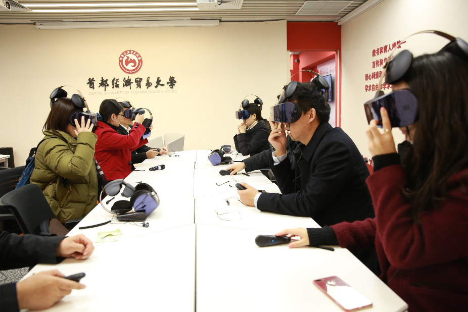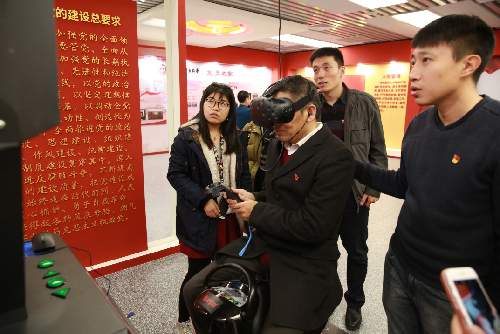 2017年11月17日,文传学院理论学习中心组和行政党支部教师党员一同参观了学校新建成的党员之家,并亲身体验了党员之家内新引进的虚拟现实系统,运用先进的VR头盔等虚拟现实设备,通过沉浸式体验,深度体验红军四渡赤水等革命关键历史时刻的虚拟现实环境,感受高科技支持下的新时代革命教育。