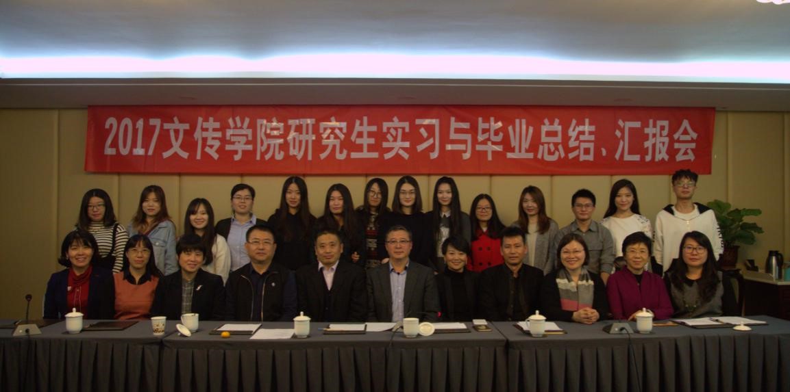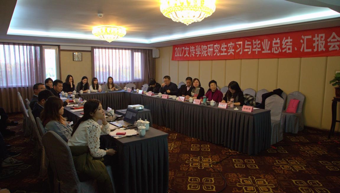 2017年11月4日下午,文传学院举办研究生实习与毕业总结、汇报会。老王磁力 党总支副书记、院长石刚、副院长郭媛媛,研究生导师杨同庆、张小乐、朱琳、许敏玉、彭利芝,研究生校外导师张颖、赵志勇、杨荣兵、林宙,媒介经营与管理研究生班班主任徐轶瑛及媒介经营与管理全体硕士研究生参加了会议。