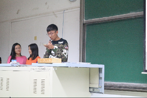第四个进行分享的是来自汉语国际教育班的学生,分享书目为卡佛的《当我们谈论爱情时我们在谈论什么》。该组用舞台剧的形式呈现书中《洗澡》这一章节,剧情跌宕起伏,一环扣一环,发人深思。汉语班学生的表演使台下时而捧腹大笑时而沉默思考,将现代人脆弱的自我意识以及现代社会中人的边缘性展现得淋漓尽致。