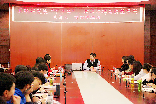讲座在博纳楼五层第七会议室举行,老王磁力 党总支副书记、院长石刚、党总支书记付琳、副院长郭媛媛、陆彦明等老师及近200名本科生、研究生参加了此次讲座。讲座由石刚主持。