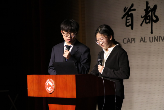 周诗怡、安德宇代表“真实的支教”社会实践活动组上台发言