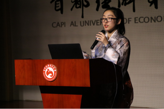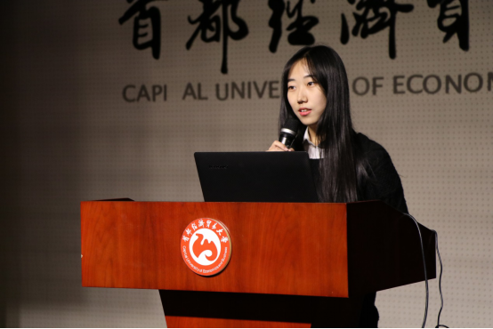接下来上台展示的是首经贸文化产业协同发展调研的代表张雨田。该组同学以京津冀三地为主要对象,通过参观博物馆、科技馆、艺术馆等方式深入调查研究了京津冀公共文化服务现状,并对京津冀公共文化服务体系协同发展提出了建议。展示十分精彩,具有很强教育意义。