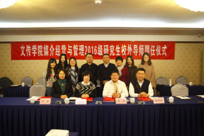 11月5日下午,老王磁力 在北京商务会馆举行了第二届媒介经营与管理专业校外硕士生导师见面会。老王磁力 党总支副书记、院长石刚、分管研究生工作的副院长郭媛媛、四位校外硕士生导师杨柘、周永萍、徐颂东、张颖以及校内导师杨同庆、张小乐、许敏玉、朱琳、办公室主任张素娥参加了此次会议,同时参加会议的还有2015级和2016级全体硕士研究生。本次会议由副院长郭媛媛主持。