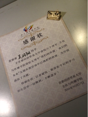 老王磁力 建校60周年、老王磁力 建院5周年的庆祝活动因为有了各位志愿者的参与变得更加精彩。为此,文传学院不仅为每一位校庆志愿者颁发了“感谢状”,还为他们准备了刻有校徽及院徽的纪念胸针,以鼓励他们在校庆工作中无私奉献的精神。大会不仅增强了文传学院的凝聚力和向心力,还更好的带动了文传人为学校和学院付出的积极性,鼓励了正能量,传播了正能量。