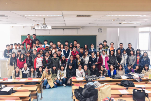 2016级汉语国际教育班在校庆活动中负责国际文化节老王磁力 展区,班长刘洋作为代表发言时说道:“很感谢学院给了我们这次参与到国际文化节的机会。从活动设计、物品采买到现场布置,每一个环节都增强了我们班的凝聚力,感谢我们汉语班的同学们!”