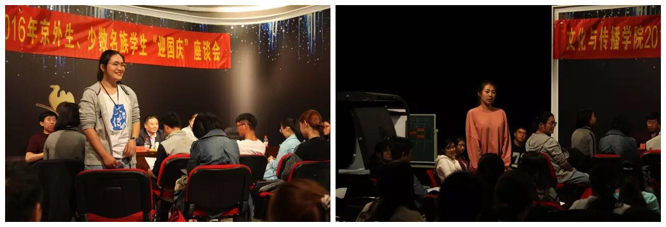 9月29日中午,文传学院领导班子和学生工作办公室的全体老师们在人文与传媒实验中心,与2016级全体京外生和少数民族学生举行了“迎国庆”交流会。