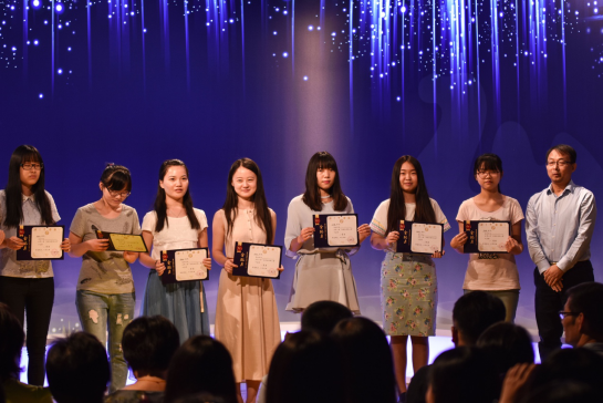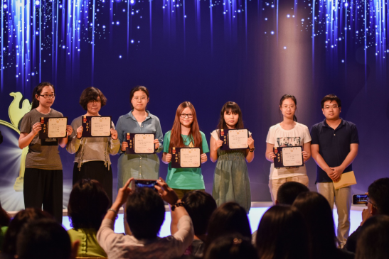 随后汉语国际教育专业技能大赛、金驼杯特稿大赛、广告创意策划大赛的获奖同学也都先后上台领奖,合影留念。文传学院汉语言文学系主任李培涛、传播学系主任郑文明和教务处副处长崔颖分别为三个活动的获奖同学颁奖。