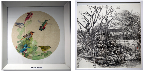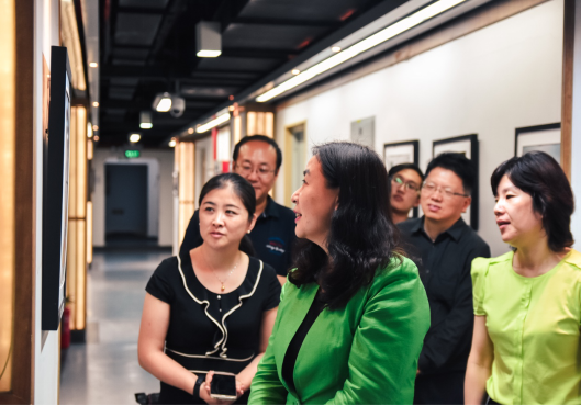 揭牌仪式结束后,徐芳副书记和学院师生一起参观了作品展,著名书法家宫双华老师对作品进行讲解。此次作品展共展出八十余幅师生作品,其中包括宫双华老师及其所指导的书法训练营的学员的书法作品,以及学院其他师生的优秀书法、绘画、摄影和广告设计作品等,内容丰富,形式多样。参观过后,副校长徐芳对此次作品展的创意和作品质量给予了高度评价,并对学院下一步在艺术实践和专业实践领域的探索和创新寄予希望。