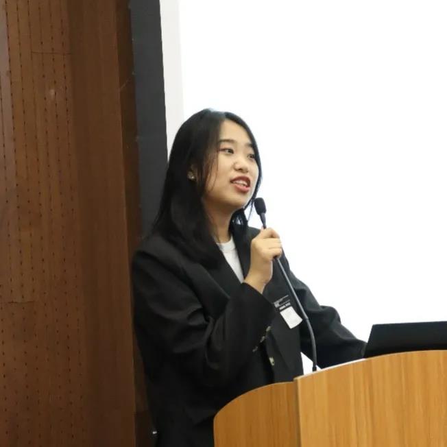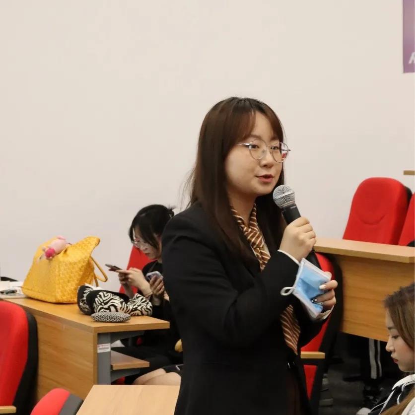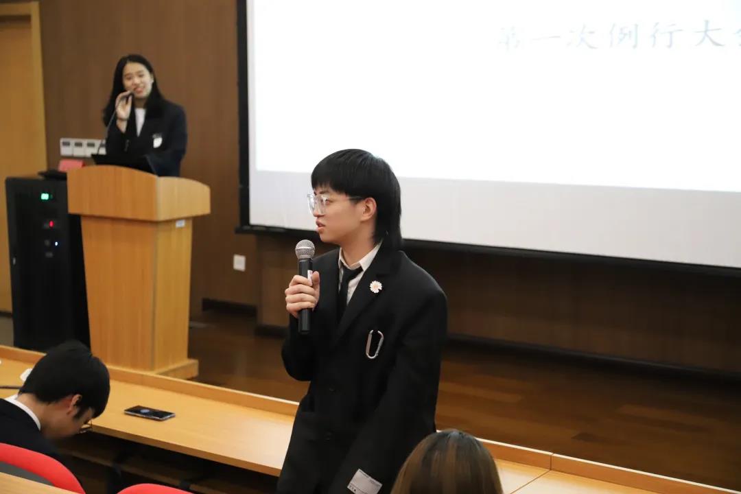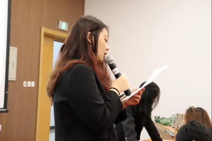 大会第二项,分团委书记郭奕彤进行发言。她首先肯定了第十届团学组织各部门的工作成绩。其次,她也严正指出了团学组织中存在的不足,希望大家都能够尽职尽责,勇挑重担,共同建设美好的文传家园。