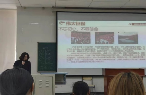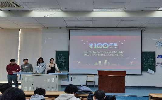 随后,参与“庆祝中国共产党成立100周年庆祝活动”的志愿者代表侯子怡、刘硕、彭希和董李分别向同学们介绍了自己在活动中的工作内容和见闻感受,并向大家展示了参与活动时的照片。