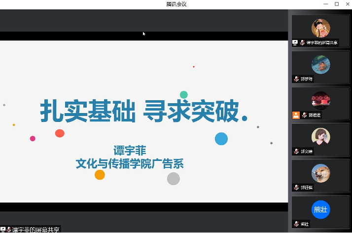广告学系副教授谭宇菲以“扎实基础 寻求突破”为主题,基于广告研究现状的经历,和到场师生分享、交流广告学科科研提升的路径与可能性。副院长郭媛媛主持此次活动。