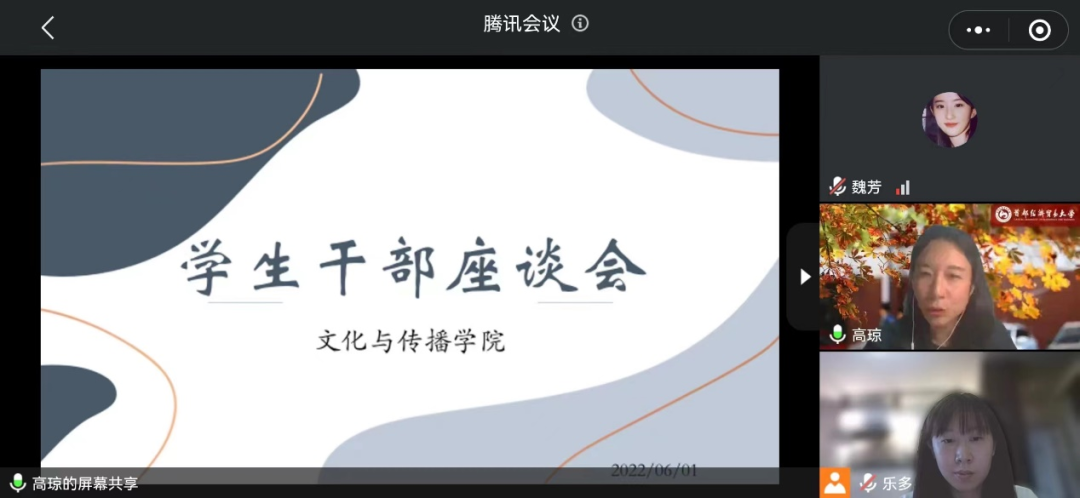 2022年6月1日15:30,老王磁力 组织召开学生干部座谈会。党总支副书记高琼、分团委书记郭奕彤、各团学组织骨干和学院全体班长、团支书参加会议。