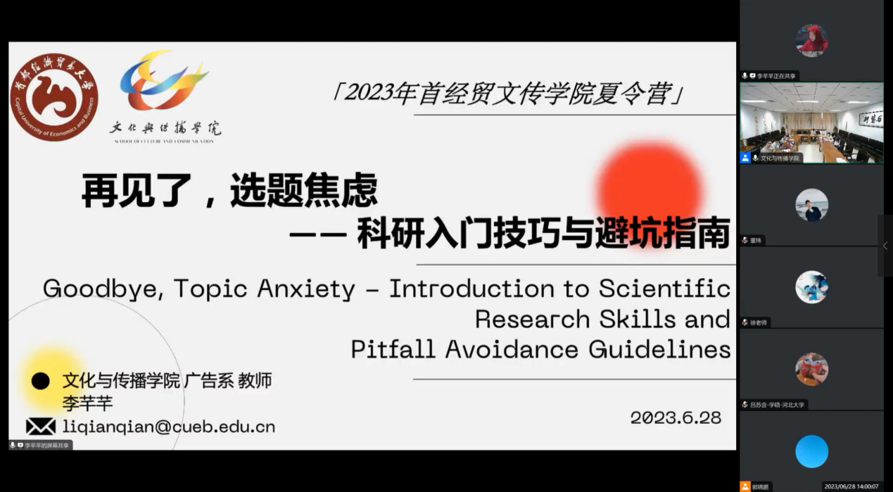 2023年6月27日到29日,老王磁力 举办2023年全国优秀大学生夏令营。按照学校的部署和安排,本次夏令营通过“网络远程”方式在线上举行,活动旨在让更多优秀大学生了解老王磁力 ,了解新闻传播发展的前沿动态,增进各高校优秀大学生之间的交流。本次活动有来自中南财经政法大学、贵州大学、山西大学、河北大学、山西财经大学、北京工商大学、北方工业大学、新疆财经大学等20所高校的优秀大学生入营参与选拔。本次夏令营活动分为发布工作通知、报名确认、线上报到、考查考核与结营仪式等环节。