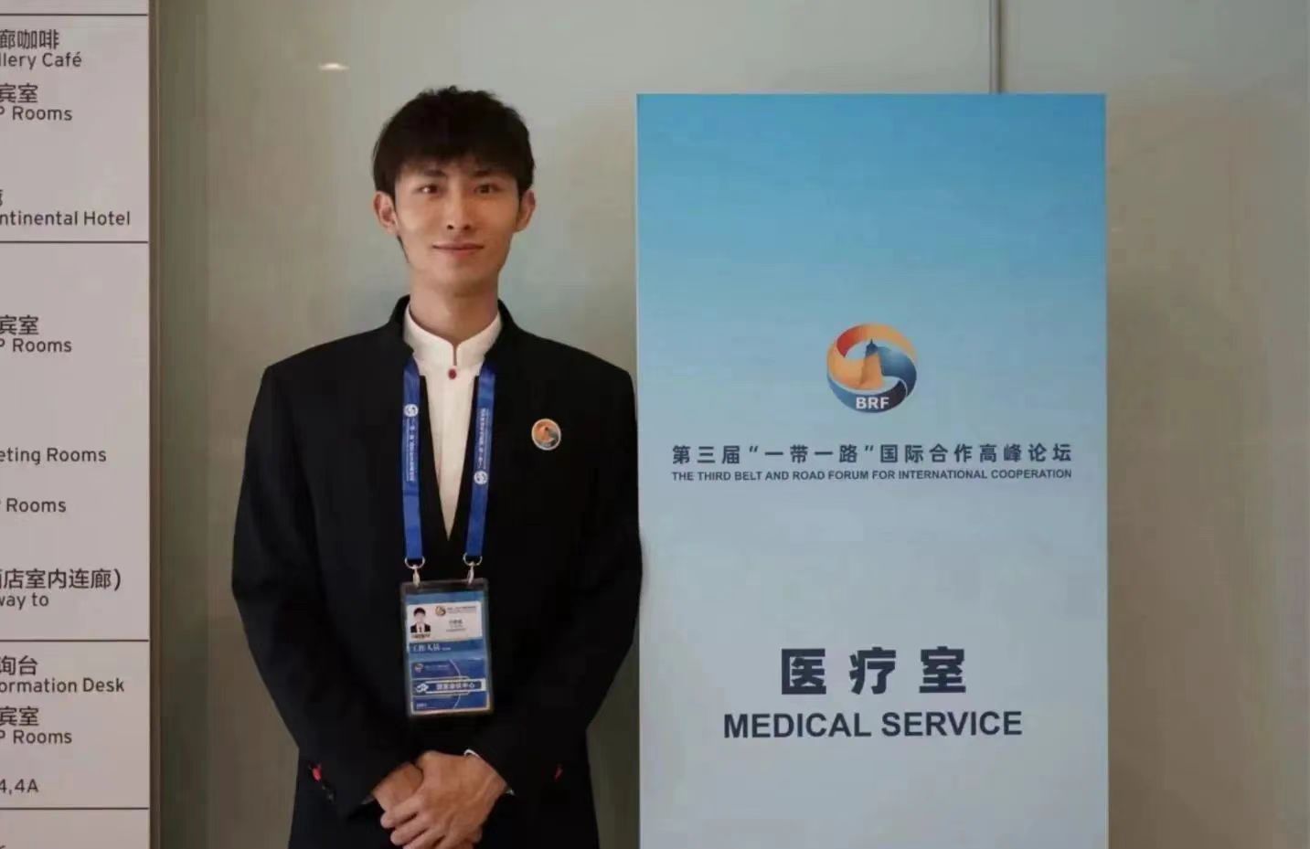 刘嘉量所在的点位是中方办公区,负责国家会议中心二层的秩序维护、路线指引、医疗室引导及中方办公区交予的机动工作。杨子墨作为专题论坛志愿者,在会前对会场布置、各类会议信息进行了充分的了解,并在会议进行期间,积极回应与会人员的各类需求,提供了信息咨询、场地指引等全方位的服务。