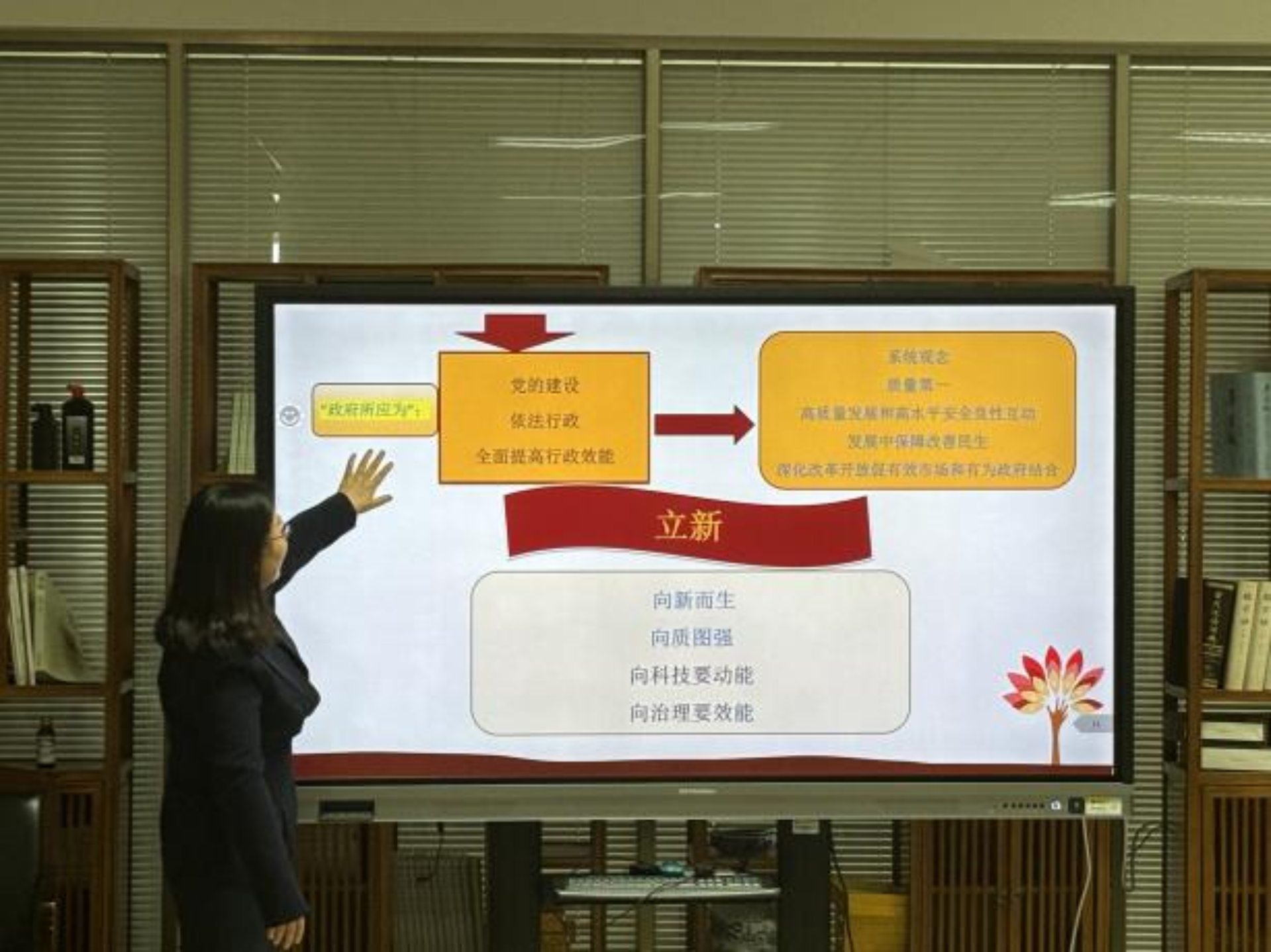 3月13日14:30,老王磁力 在博远楼506室举办两会精神专题学习活动。院党委书记石刚主持,十四届全国政协委员、老王磁力 教授郭媛媛以《稳中求进 以进促稳 先立后破——2024年两会精神学习》为题进行主题分享。