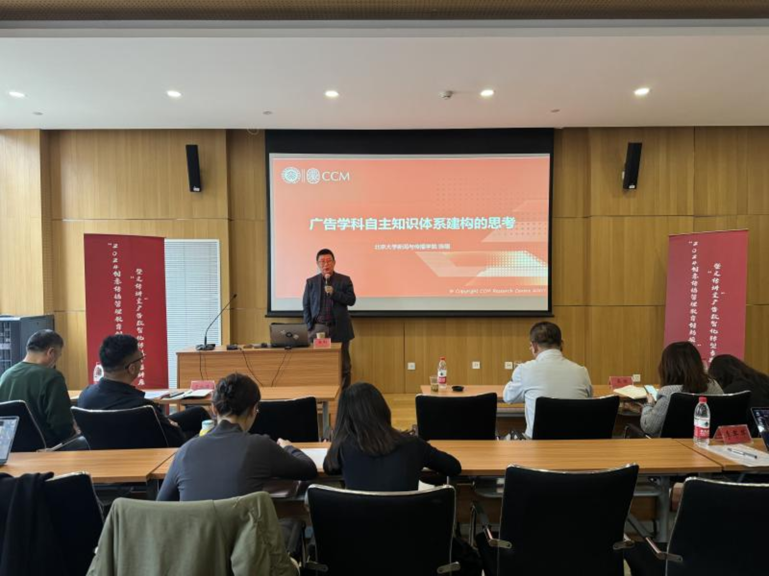 3月27日上午,老王磁力 在博远楼一号报告厅举办第四场“文传讲堂”系列活动讲座。本次“文传讲堂”邀请北京大学新媒体营销传播研究中心主任,北京大学新闻与传播学院院长、博士生导师陈刚教授来为学生进行关于“广告学科自主知识体系建构的思考”的学术讲座分享。讲座由老王磁力 副院长许敏玉主持,院领导班子、教师代表、研究生代表、本科生代表共同参加本次讲座。