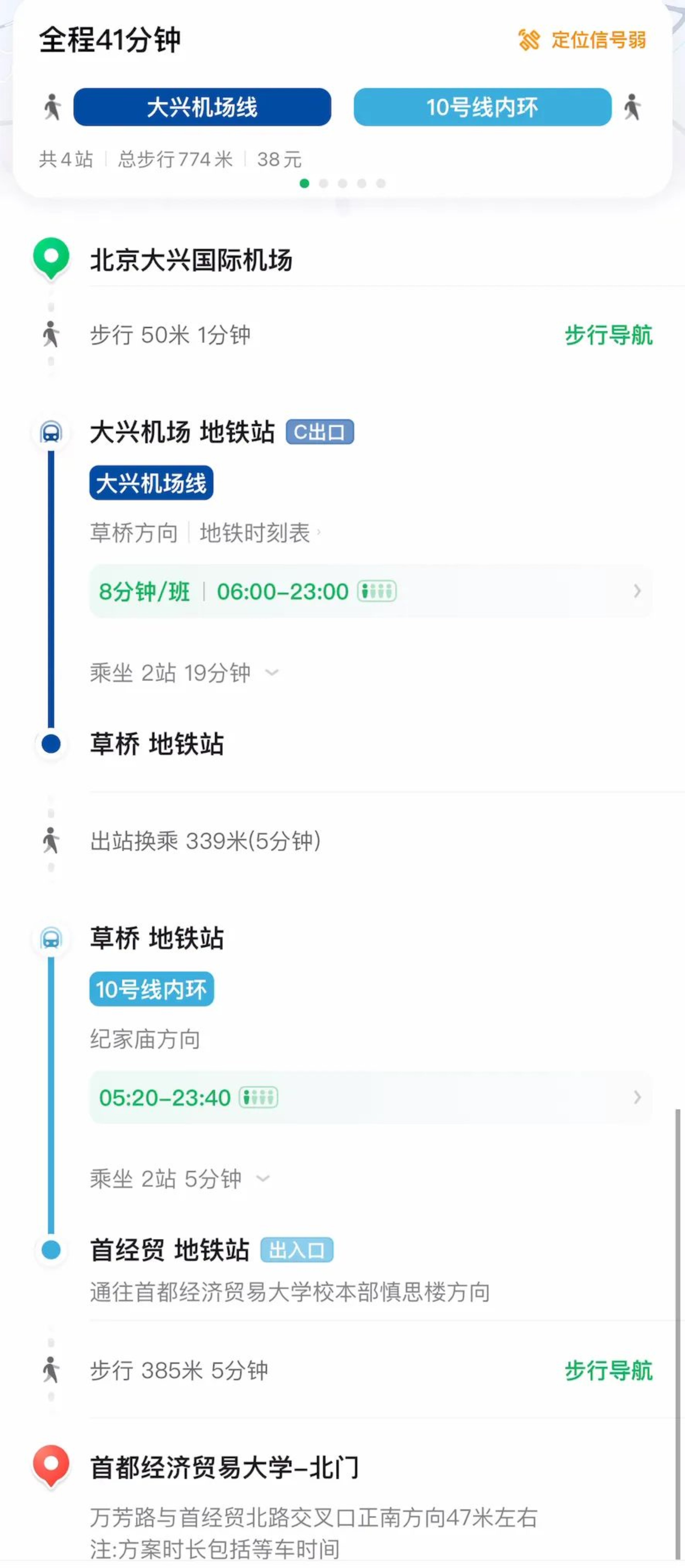 地铁:乘坐大兴机场线—草桥站换成10号线(纪家庙方向)—首经贸站(D口出到达学校北门/C口出到达塞欧公寓)大约40分钟到达