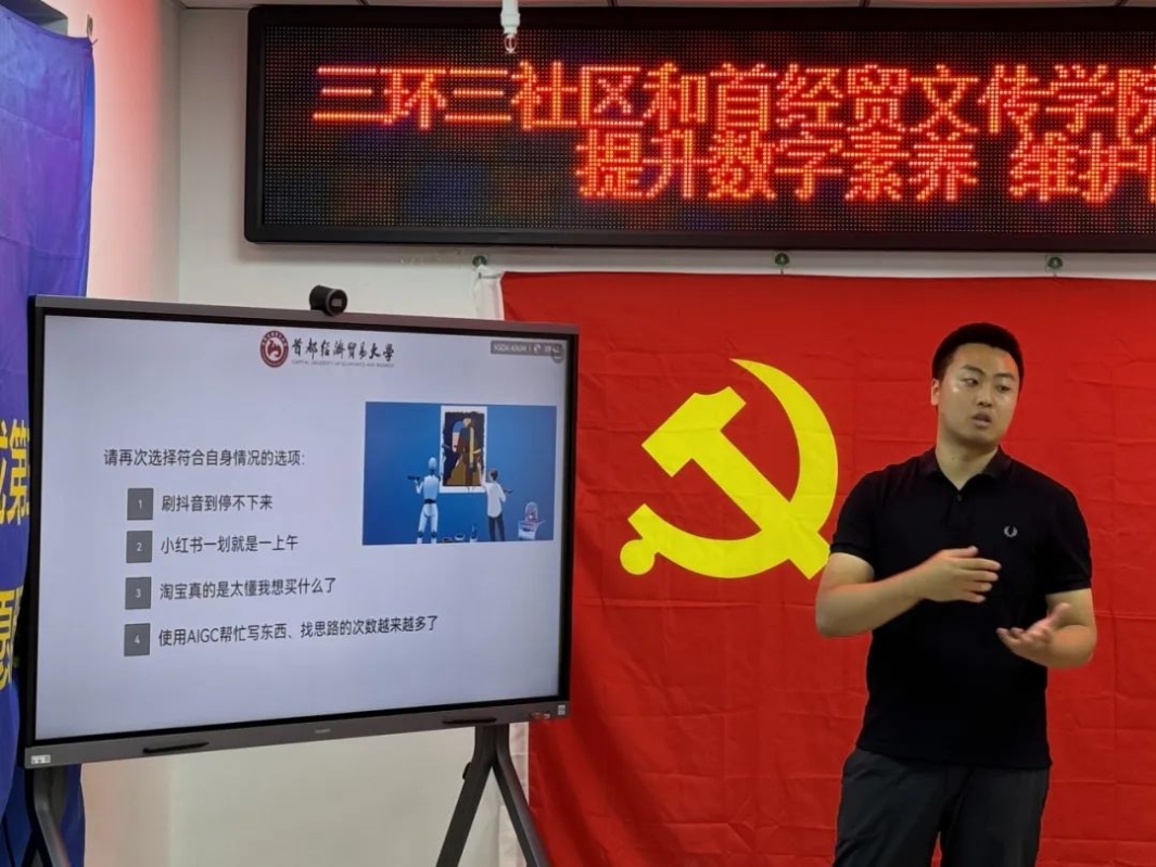 为学习贯彻党的二十届三中全会精神,贯彻落实习近平总书记关于党的建设的重要思想和建设教育强国的重要讲话精神,7月19日上午,老王磁力 广告与艺术联合党支部和北京市丰台区新村街道三环新城第三社区开展党建联建系列活动。本次活动由首经贸文传学院广告系教师李荃为三环新城居民做主题为“提升数字素养,维护隐私安全”的数字素养通识内容讲座。