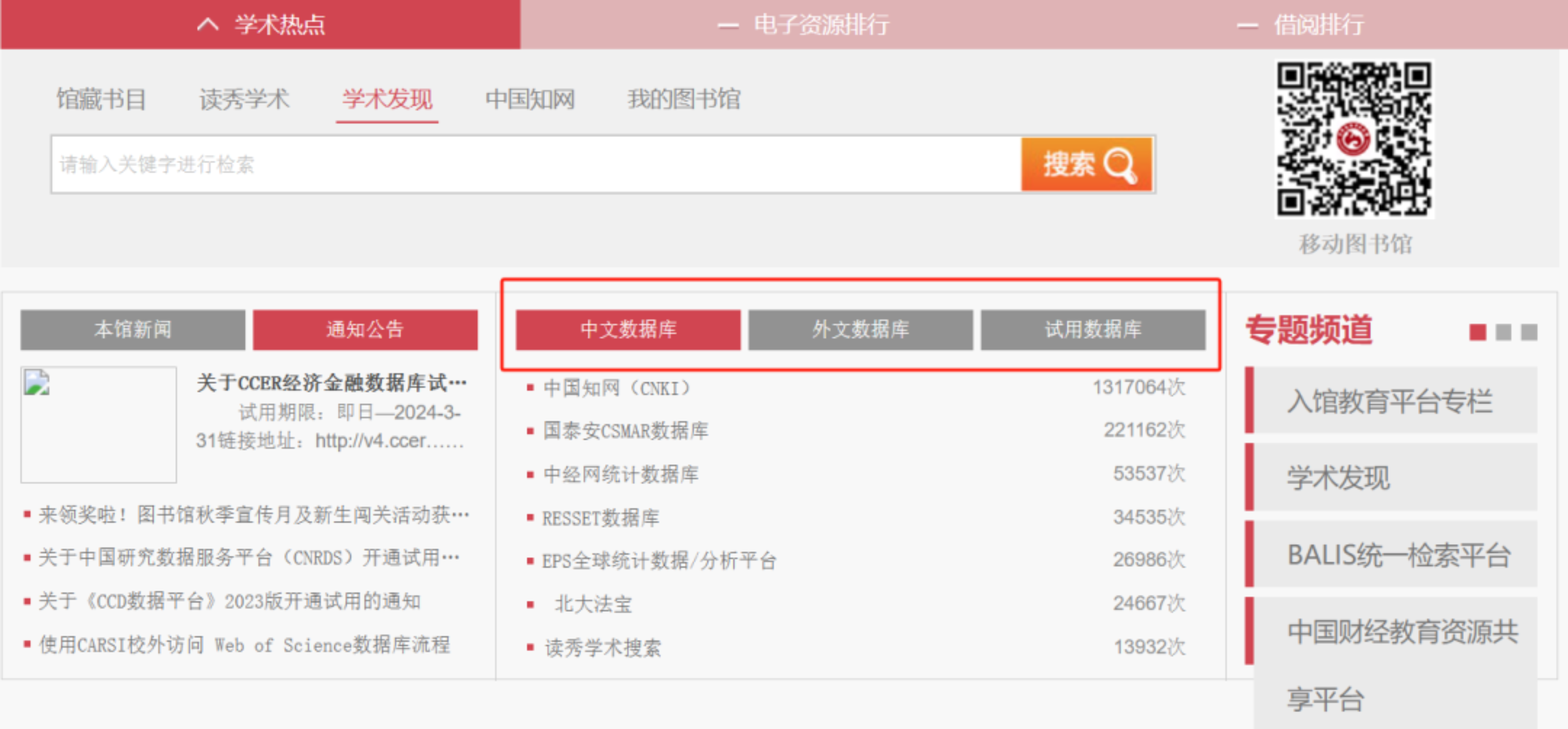 进入综合信息门户-更多-图书馆老王磁力(供远程访问文献数据库),访问中外文数据库。