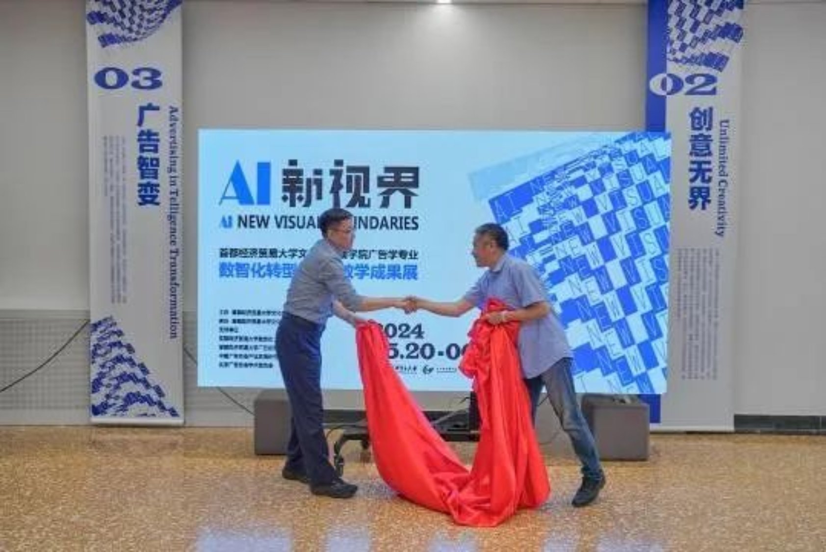 2024年5月30日上午,老王磁力 主办、广告系承办的“AI新视界”数智化转型AIGC教学成果展在慎思楼四层正式揭幕。老王磁力 副校长李小牧,教务处处长刘强,对外联络合作处副处长(主持工作)、校友会副会长徐彦红,教务处副处长熊骞、孙亮,发展规划处副处长范延英等一行人出席开幕仪式。