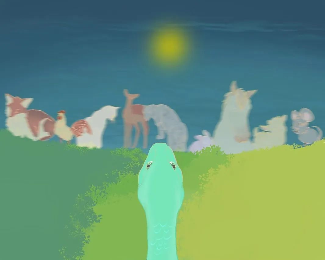 怀揣着温暖与希望,小青蛇又走到一片宁静的冰湖。平静的湖面宛如一面巨大的镜子,在阳光的照耀下闪烁着晶莹的光芒。神奇的是,当小蛇在湖面上滑动时,湖面竟缓缓浮现出各种动物的倒影,它们面带微笑,向灵蛇传达着新年的祝福:“小青蛇,新的一年,愿你勇敢前行,实现梦想!”