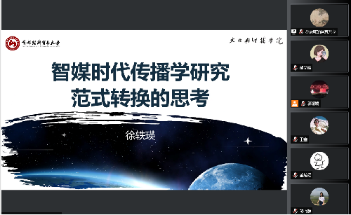 活动由副院长郭媛媛主持,传播学系党支部书记、副主任徐轶瑛副教授担任主讲嘉宾。徐轶瑛以“智媒时代传播学研究范式转换的思考”为主题,分享她对智媒时代传播学研究的深入分析与思考。